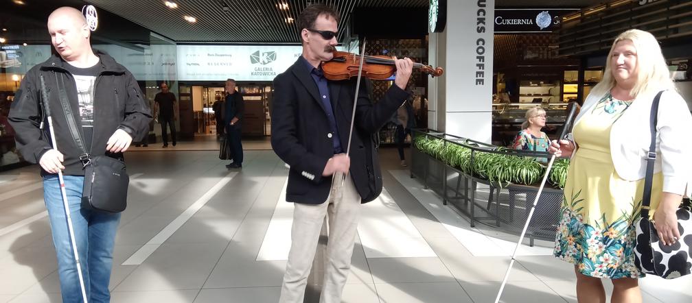 Punktualnie o 11 w hali katowickiego dworca PKP rozległ się dźwięk skrzypiec. Na ten sygnał osoby niewidome zaczęły ujawniać swoją obecność. Jednak zrobiły to w niecodzienny sposób. W ślad za skrzypkiem kilka osób przemaszerowało w pobliże schodów przy jednym z fast foodów. Tam czekały już niewidoma pianistka i śpiewaczka, a po chwili dołączył do nich chór. W ten sposób osoby niepełnosprawne chciały zaznaczyć swoja obecność i pokazać, że żyją tak jak inni i nie potrzebują litości.