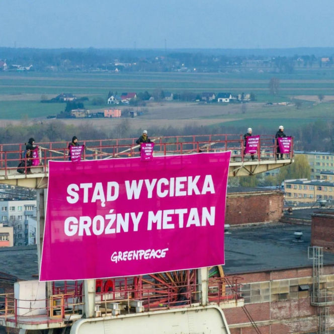 Aktywiści Greenpeace na wieży szybowej kopalni Knurów-Szczygłowice - Super Express