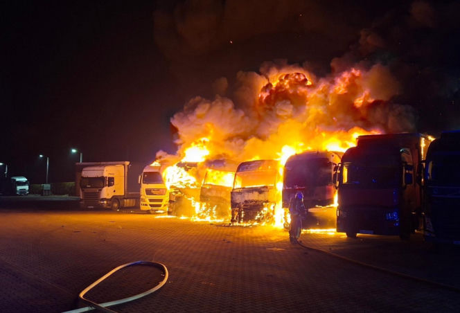 Ciężarówki płonęły jak pochodnie. Ogień przenosił się na kolejne samochody