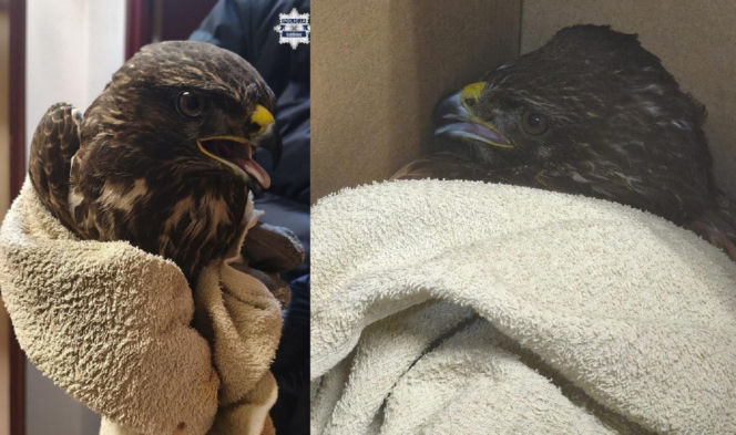Ranny myszołów leżał bezradny i czekał na pomoc. Uratowali pięknego ptaka
