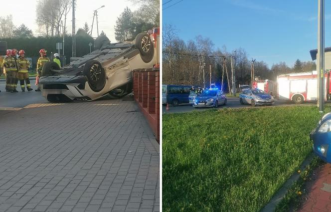 Dachowanie auta na skrzyżowaniu ulicy Sportowej z Racławicką
