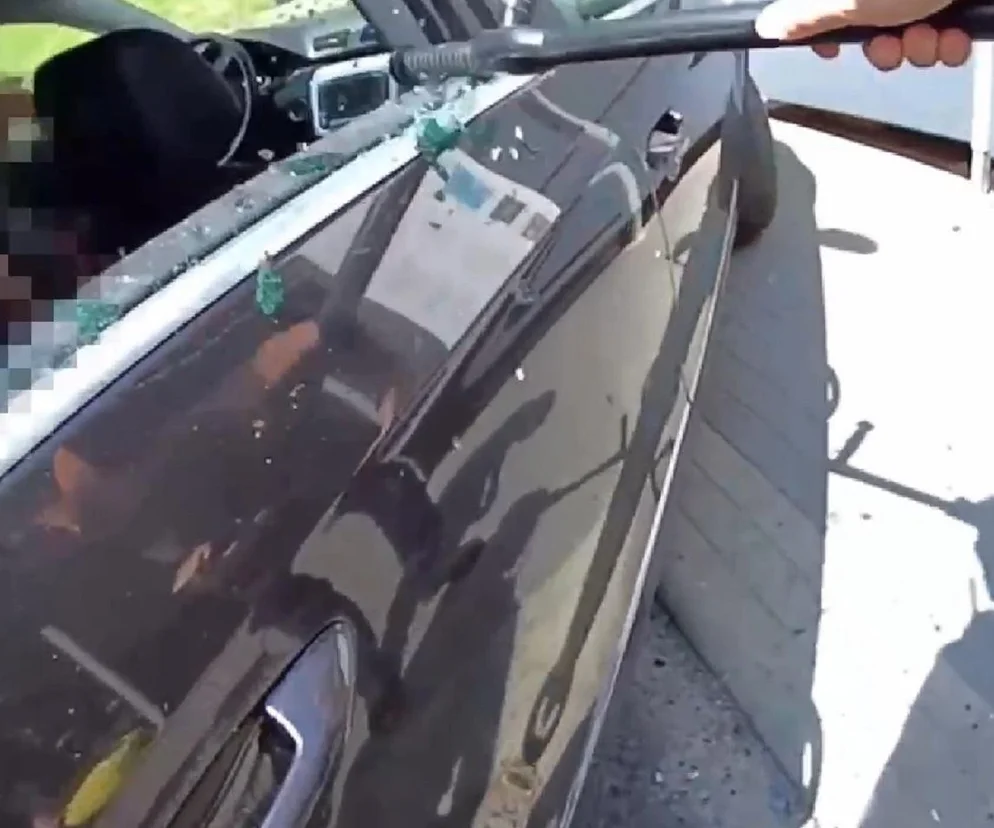 Mundurowi świadomi zagrożenia podjęli decyzję o wybiciu szyby w aucie. Dzięki temu udało się uwolnić uwięzionego mężczyznę.