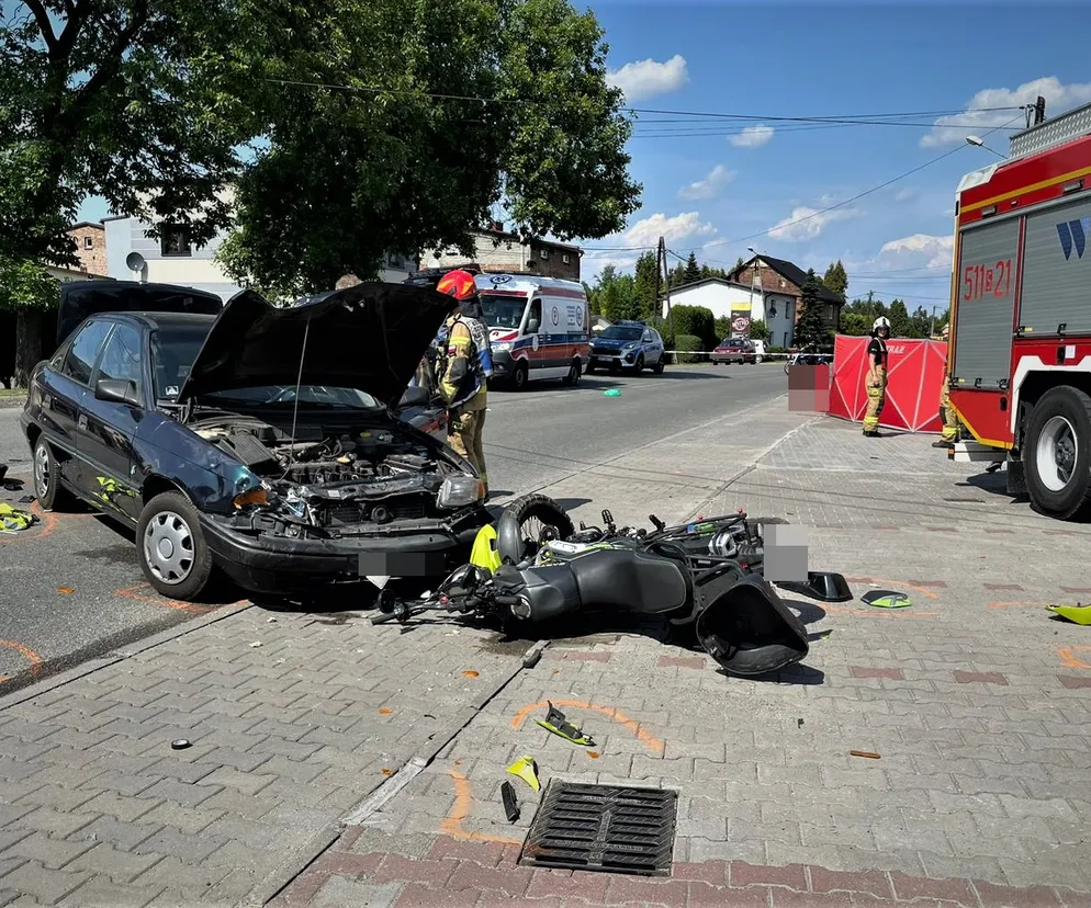 Wypadek miał miejsce w poniedziałek (19 czerwca) na ulicy Rybnickiej w Orzeszu. Jak ustaliła policja, kierujący oplem 63-latek, wykonując manewr skrętu w lewo, nie ustąpił pierwszeństwa jadącemu z przeciwnej strony motocykliście i doprowadził do zderzenia. - Mimo prowadzonej reanimacji mieszkaniec Łazisk Górnych zmarł.Kierujący oplem orzeszanin był trzeźwy - podaje KPP w Mikołowie dodając, że 63-latek został zatrzymany. Służby pracowały na miejscu pod nadzorem prokuratora. Utrudnienia trwały kilka godzin. Obecnie trwa ustalanie okoliczności tego tragicznego wypadku. Poniżej zdjęcia ze zdarzenia.