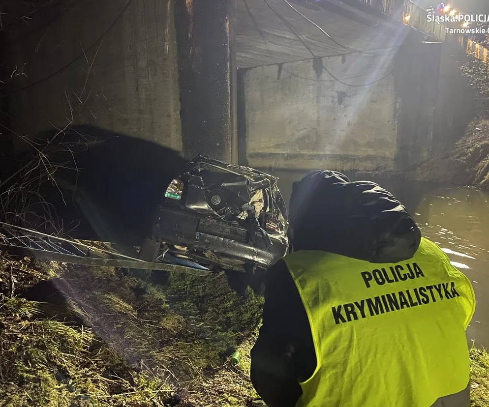 Tragiczny wypadek w Potępie miał miejsce w piątek, 20 stycznia nad ranem. Jak relacjonował nam wówczas sierż. szt. Kamil Kubica z Komendy Powiatowej Policji w Tarnowskich Górach, mający w tej okolicy patrol policjanci dostrzegli, że na moście brakuje barierek. Postanowili sprawdzić, co się stało. - Okazało się, że w korycie rzeki, na dachu leży pojazd. Stróże prawa od razu ruszyli w kierunku auta. Nie byli jednak w stanie sprawdzić, czy ktoś jest w środku, ponieważ samochód znajdował się pod wodą, a spod powierzchni wystawały tylko koła - opisuje tarnogórska KPP.