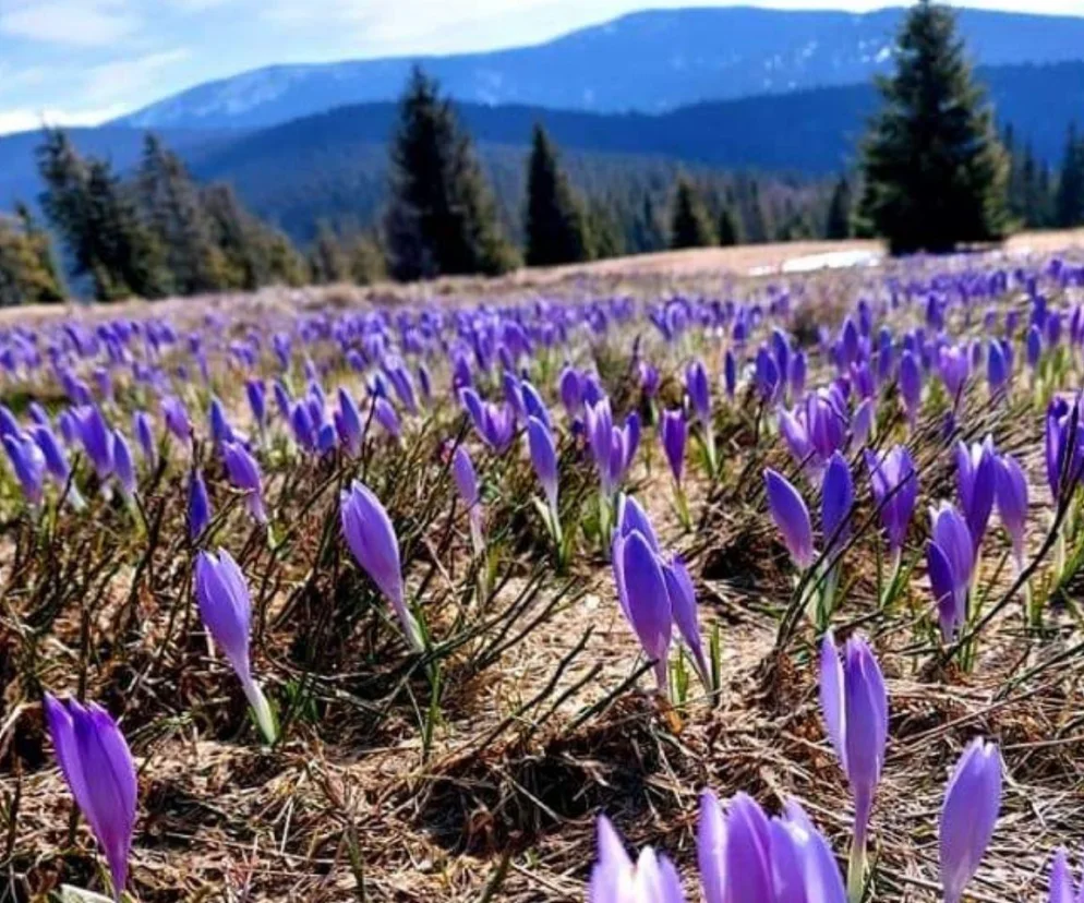 Krokusy w Beskidach. Te regiony stanowią silną konkurencję dla Tatr