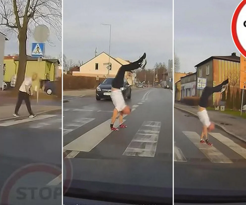 Na rękach przeszedł przez przejście dla pieszych. Kierowcy w szoku!