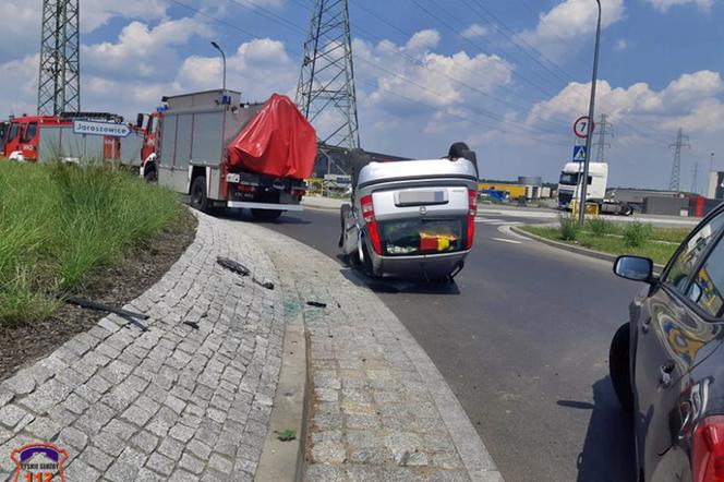 Tychy: Koszmarny wypadek na rondzie. Auto kobiety dachowało przez pijanego kierowcę!