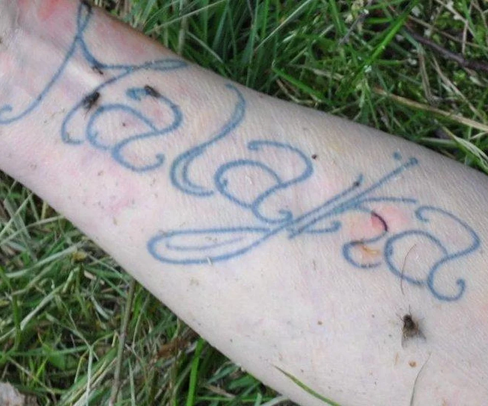 Znaki szczególne: mocno skrzywiony nos oraz liczne tatuaże, w tym: