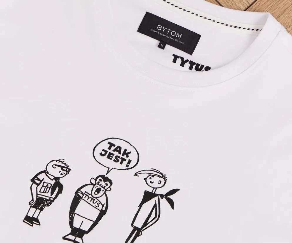 Bytom od lat odwołuje się do motywów z rodzimego kodu kulturowego – od klasyki malarstwa po polską szkołę plakatu – odpowiadając na oczekiwania odbiorców szukających w modzie autentyczności oraz wartościowej narracji. Najnowsza kolekcja kapsułowa z ilustracjami Henryka Jerzego Chmielewskiego naturalnie uzupełnia artystyczną linię marki, tym razem o słynne przygody Tytusa, Romka i A’Tomka.