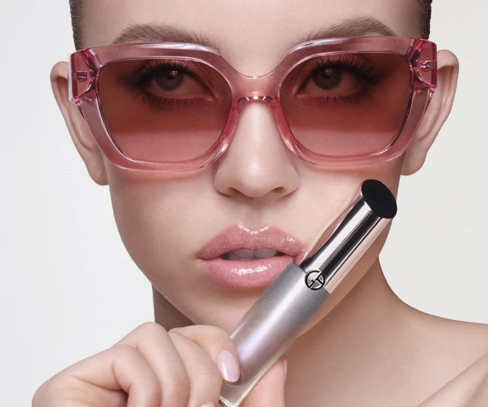 Aby ucieleśnić lodowato chłodną estetykę kampanii, globalna ambasadorka zapachów i makijażu Giorgio Armani, Sydney Sweeney, zapozowała z odcieniem 32 ice pink.