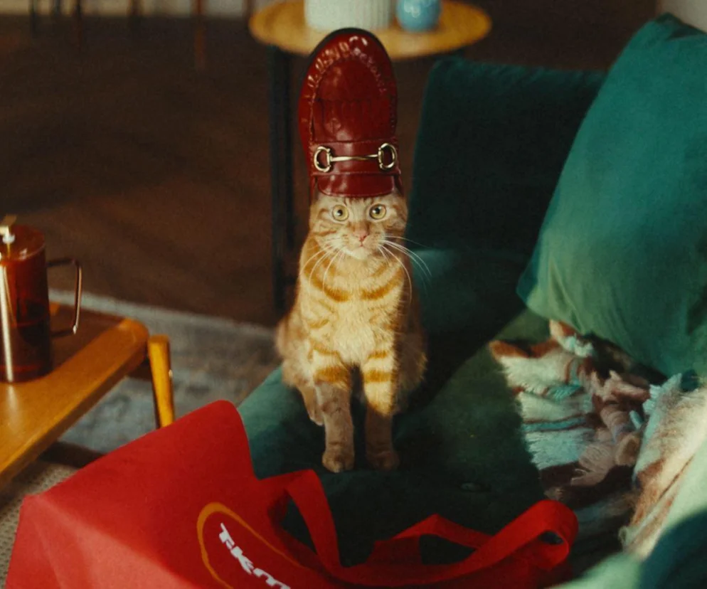 40-sekundowy film reklamowy został wyreżyserowany przez nagradzanego Andreasa Nilssona, znanego z umiejętności tworzenia widowiskowych i wyrazistych opowieści. W centrum fabuły znajduje się urocza i niezwykle bystra kotka, której przypadkowy, modowy wybryk wywołał prawdziwą burzę w świecie stylu. W filmie nasza futrzana bohaterka rozpoczyna swoją niezwykłą podróż: buszując w charakterystycznej czerwonej torbie TK Maxx, pełnej stylowych perełek, wyławia markowy but. Z mokasynem dumnie spoczywającym na głowie, szybko staje się viralową sensacją internetu. W materiale śledzimy rozwój jej spektakularnej kariery, która zaczyna się w biurze prasowym z widokiem na pulsujący skyline Warszawy. To tam trendsetterzy z największych domów mody natychmiast wyczuwają nadchodzące, stylowe looki. Następnie trafiamy do majestatycznego, ikonicznego wnętrza Pałacu Kultury i Nauki – architektonicznej perły stolicy. Kulminacyjnym punktem jest wielki pokaz mody, na którym modele i modelki prezentują różne wariacje na temat czerwonego „kapelusza z mokasyna”, a flesze aparatów nieustannie błyskają, celebrując narodziny nowego trendu. Po triumfie na wybiegu, nasza kocia gwiazda efektownie przejeżdża przez Plac Europejski w lśniącej limuzynie, otoczona blaskiem paparazzi. Historia jednak kończy się subtelnym powrotem do rzeczywistości, kiedy opiekunka zdejmuje jej but z głowy, puentując tę niezwykłą przygodę słowami: „Oddaj to, ty mała łowczyni okazji”.