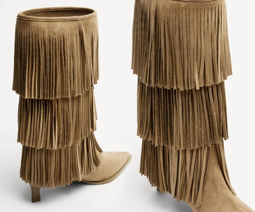 Kluczowym elementem tej estetyki są dodatki. Słomkowe kapelusze w stylu westernowym, warstwowa biżuteria z turkusowymi akcentami, miękkie plisowania i ziemiste odcienie tworzą look, który idealnie balansuje między boho romantyzmem a nieokiełznaną energią Dzikiego Zachodu.