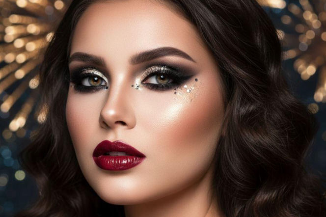 Błyszczące oczy to absolutny must-have w sylwestrowym makijażu. Postaw na cienie z brokatem, metaliczne pigmenty lub cekinowe akcenty, które sprawią, że Twoje spojrzenie będzie hipnotyzujące. Możesz zdecydować się na klasyczne smoky eye w odcieniach szarości i czerni, wzbogacone o błyszczące drobinki, lub postawić na bardziej odważne kolory, takie jak złoto, srebro, miedź czy intensywny granat. Nie zapomnij o eyelinerze, który podkreśli linię rzęs i doda spojrzeniu wyrazistości.