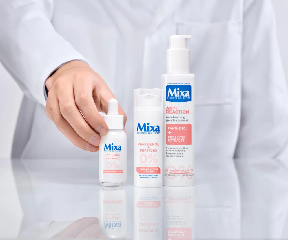 Ze względu na ogólne osłabienie organizmu, które pojawia się na przełomie marca i kwietnia, a co za tym idzie większą podatność na stres i wpływ czynników zewnętrznych, odpowiednim wyborem może być linia dedykowana skórze reaktywnej. Do objawów, które charakteryzują ten typ, należą: zaczerwienienie, uczucie pieczenia, napięcia i ściągnięcia skóry, a także łuszczenie się skóry, swędzenie czy rozszerzenie się naczyń krwionośnych, choć to ostatnie nie jest jednoznaczne, bo stanowi objaw także cery naczynkowej. Kompleksowa pielęgnacja skóry reaktywnej może odbyć się dzięki 3 kosmetykom Mixa Anti Reaction. Emulsja do mycia twarzy przeciw zaczerwienieniom, mleczne serum kojące przeciw zaczerwienieniom i krem regenerujący przeciw zaczerwienieniom mogą stanowić odpowiedź na potrzeby skóry podczas urodowego przesilenia wiosennego.