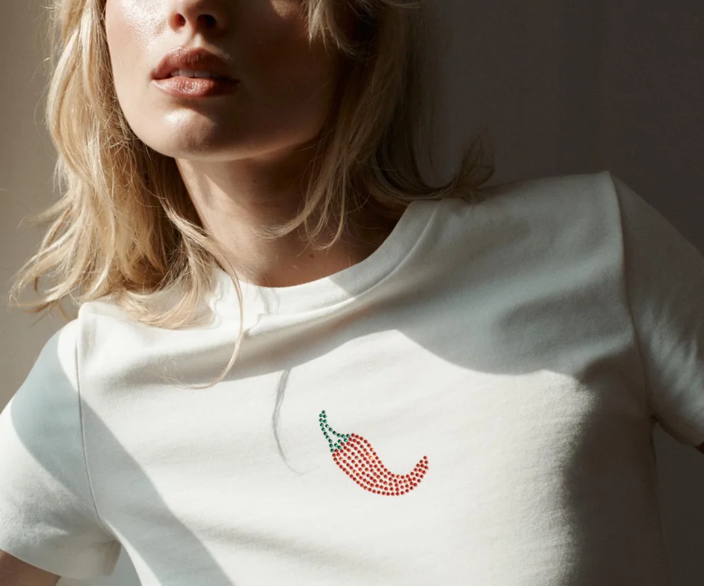 W kolekcji znalazły się również wiązane na kokardki koszule, bluzki z wiskozy, czy szerokie spodnie z zakładkami i wysoką talią uszyte z Tencelu™. Stonowaną paletę błękitów, kremów i zieleni przełamują czerwone akcenty w postaci t-shirtu z papryczką chilli i dzierganego kardiganu dodając do kolekcji nieoczywisty kontrast.