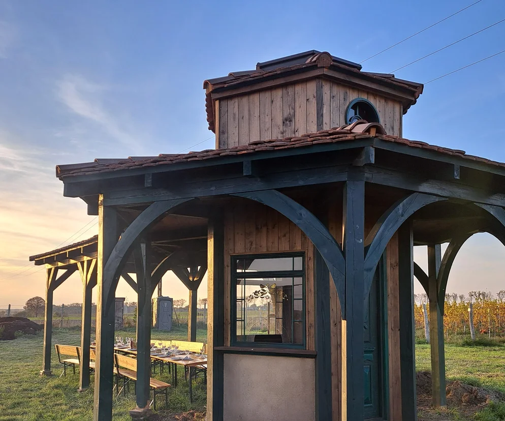 Renata Wcisło i Marcin Furtak to pasjonaci historii, dlatego, gdy w 2017 roku zakładali winnicę, nazwali ją na cześć miasta. Saganum to łacińska nazwa Żagania, gdzie winorośle uprawiano już w XIII wieku. Pierwszymi winogrodnikami byli mnisi, którzy winnymi krzewami obsadzali klasztorne pola. Wina dojrzewały w piwnicach, w których i dziś leżakują czerwone i musujące trunki z Saganum. To właśnie na terenie Opactwa Kanoników Regularnych w Żaganiu powstawały zdjęcia do filmu „Chopin, Chopin!”. Właściciele winnicy każdego dnia przechodzili obok planu. Gdy ekipa skończyła nagrywać, postanowili odkupić scenografię i przenieść ją na winnicę. I choć przez teren żagańskiego opactwa przebiega Trakt Winny, znajduje się tu Muzeum Winiarstwa oraz sala degustacyjna, a wszystko w przepięknym otoczeniu przyklasztornego ogrodu obsadzonego winoroślami, to po wizycie tutaj, warto wybrać się na winnicę oraz do winiarni Saganum w Bożnowie, nie tylko dla filmowej scenografii.