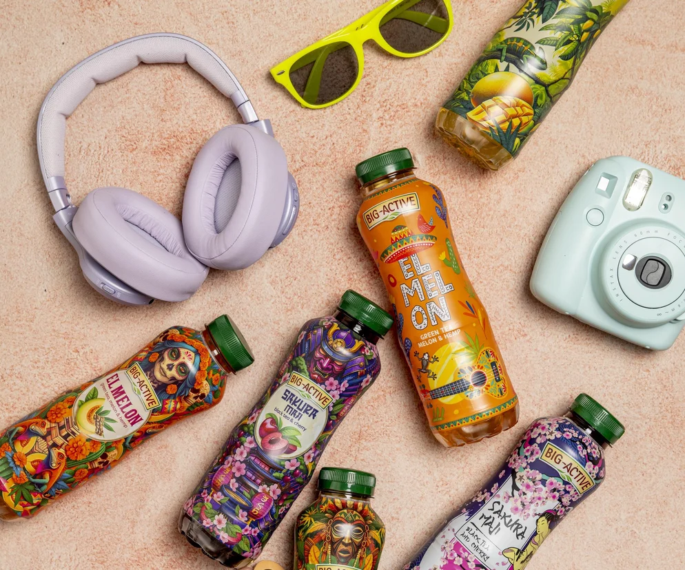 W ten trend idealnie wpisują się nowe ice-tea Big-Active, które przynoszą egzotyczne orzeźwienie i intrygują niezwykłym designem. Te owocowo-herbaciane napoje zawierają aż 99,9% składników pochodzenia naturalnego i zachwycają niebanalnymi smakami oraz wyważonym, przyjemnym poziomem słodkości. Każdy z trzech dostępnych wariantów występuje w dwóch różnych, lecz równie zaskakujących i wyjątkowych szatach graficznych. Niezwykle kolorowe i pełne egzotycznych symboli pozwolą poczuć ducha dalekich podróży – niezależnie, gdzie się znajdujemy.
