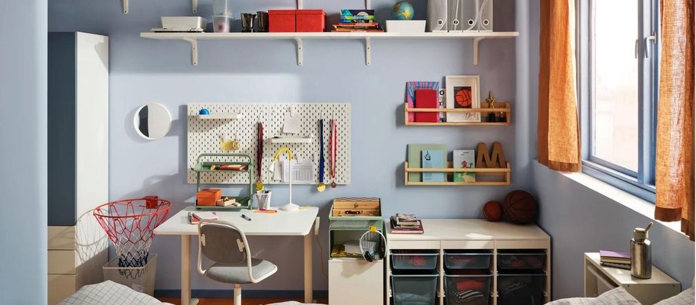 Dobrze zaplanowane miejsce do nauki potrafi wiele ułatwić, pomóc w skupieniu i organizacji. W przypadku starszych uczniów świetnie sprawdzi się modułowa seria SKÅDIS, która dzięki tablicy perforowanej, półkom, pojemnikom i haczykom pozwala zachować porządek. Wszechstronna konstrukcja pozwala tworzyć i zmieniać kombinacje wraz z rozwojem zainteresowań, dzięki czemu system może pełnić rolę zarówno centrum nauki, jak i miejsca do realizacji kreatywnych projektów.