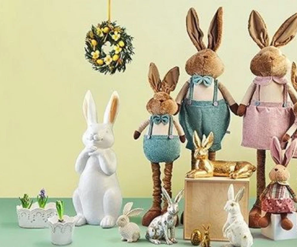 Wśród propozycji znajdują się wiosenne wianki, ceramiczne zajączki w różnych odsłonach oraz pluszowe figurki z regulowaną długością nóg – praktyczne rozwiązanie, które umożliwia swobodne ustawienie ich na półce, komodzie czy parapecie. Kolekcję uzupełniają filcowe koszyczki, osłonki na doniczki, świeczki w kształcie jajek oraz drobne zawieszki i dekoracje. Wszystkie te elementy pozwalają wykreować w domu odświętną, radosną atmosferę.