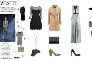 Zwolenniczki bardziej stonowanych kolorów także mogą wyglądać oryginalnie. Czarna koktajlowa sukienka z przezroczystymi elementami będzie hitem wieczoru w połączeniu ze złotymi butami i biżuterią. Stylizację dopełni elegancka kopertówka i klasyczny płaszcz.