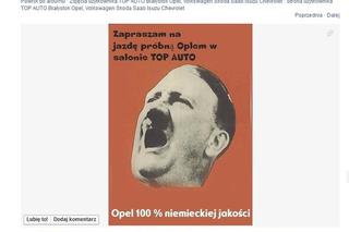 Adolf Hitler wykrzykujący „Zapraszam na jazdę próbną Oplem w salonie Top Auto”- takie zdjęcie pojawiło się na oficjalnym fanpage’u salonu w Białymstoku, o czym poinformował serwis autokrata.pl. Jak się okazało, zdjęcie zostało wstawione przez pracownika salonu...