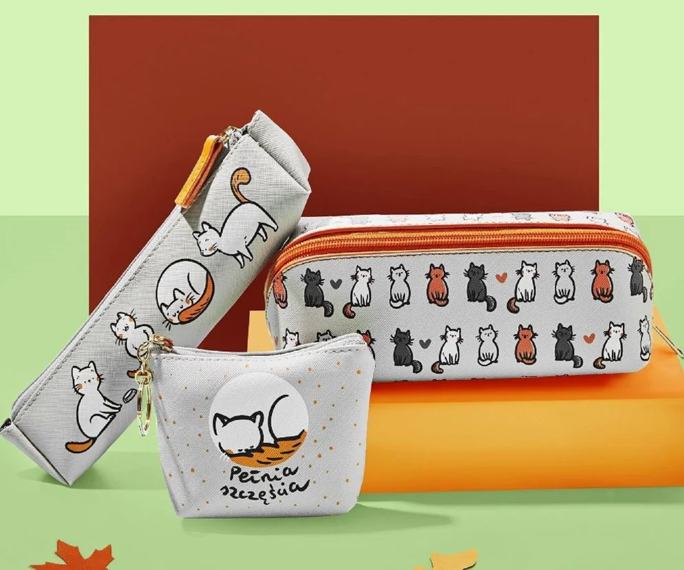 W ofercie Kotter Autumn znalazły się przytulne tekstylia – poduszki, koce, termofory i ogrzewacze. Na fanów jesiennych rytuałów czekają ceramiczne kubki i szklanki z kocim bohaterem, które umilą każdą kawę czy herbatę. Miłośników praktycznych gadżetów ucieszą kosmetyczki, lunchboxy i termosy z ilustracjami Kottera. Artystyczne dusze znajdą dla siebie notesy, piórniki, zakładki i długopisy, a osoby szukające drobnych upominków mogą sięgnąć po naklejki, przypinki, breloki czy kartki okolicznościowe. Całość dopełniają torby prezentowe z zabawnymi, kocimi hasłami.