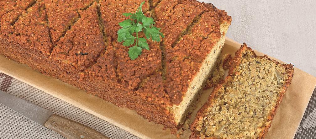 Odsączoną kaszę i soczewicę przełóż do miski, dodaj podsmażone warzywa, płatki owsiane, siemię lniane, sos sojowy, olej i przyprawy. Zmiksuj, przełóż do keksówki i piecz przez ok. 50 minut w 180°C. Wystudź i wstaw na noc do lodówki.