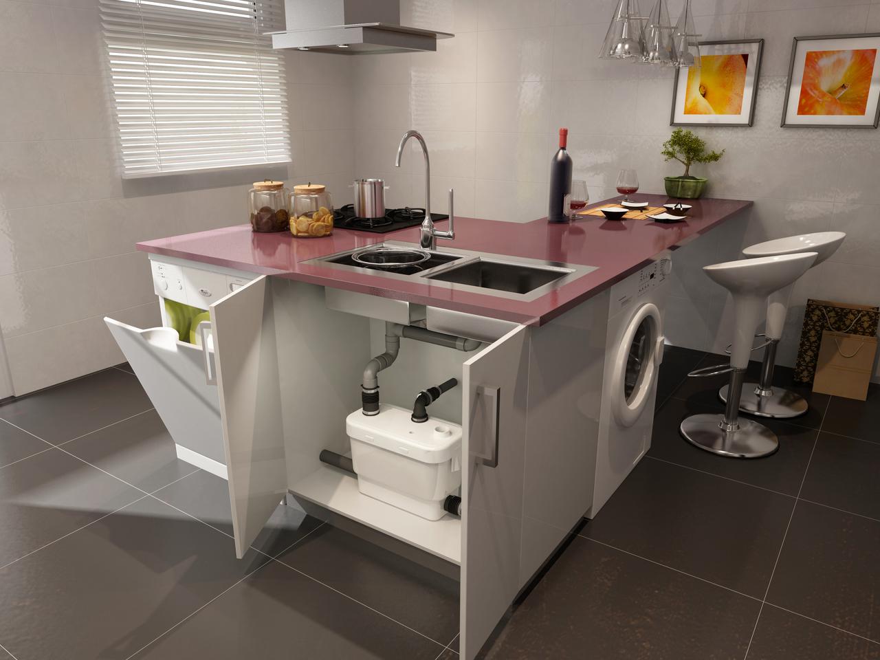 Pompy do ścieków szarych są urządzeniami przetłaczającymi ścieki z całej kuchni, łazienki, pralni bez WC. Zastosowanie tych urządzeń pozwala na dowolną aranżację tych pomieszczeń bez względu na położenie pionów kanalizacyjnych. Istnieje możliwość stworzenia wyspy kuchennej bez konieczności przeprowadzenia kosztownych prac adaptacyjnych (Sanivite, Sanidouche, Saniaccess 4).