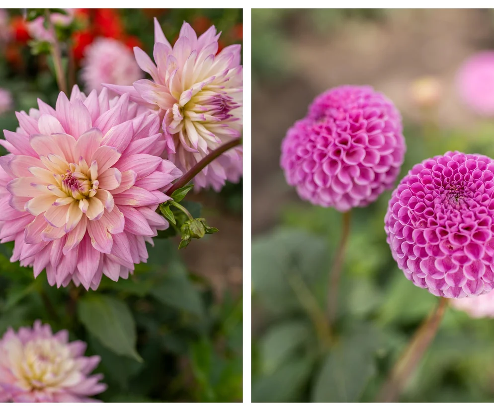 - Dalie: królowe letnich i jesiennych rabat, oferują niezliczoną ilość odmian różniących się wysokością i kształtem. Od małych, pomponowych po duże, talerzowe – każda z nich to małe dzieło sztuki. Oszałamiają także kolorystyką, od klasycznej i czystej bieli, przez delikatne pastele, takie jak pudrowy róż, subtelny liliowy czy kremowa żółć, aż po intensywne i nasycone odcienie: głęboką czerwień, jaskrawy pomarańczowy, słoneczny żółty czy fiolet. Nie brakuje również odmian o dwukolorowych płatkach, z kontrastującymi brzegami, paskami czy cętkami.