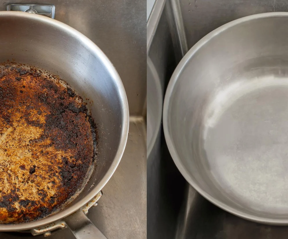 Postaw przypalony garnek z wodą na gazie i wsyp 4 łyżki. Spalenizna odpadnie bez szorowania