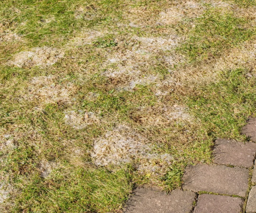 - Pleśń śniegowa to powszechny problem trawników po zimie, tworzący szare plamy i osłabiający trawę.