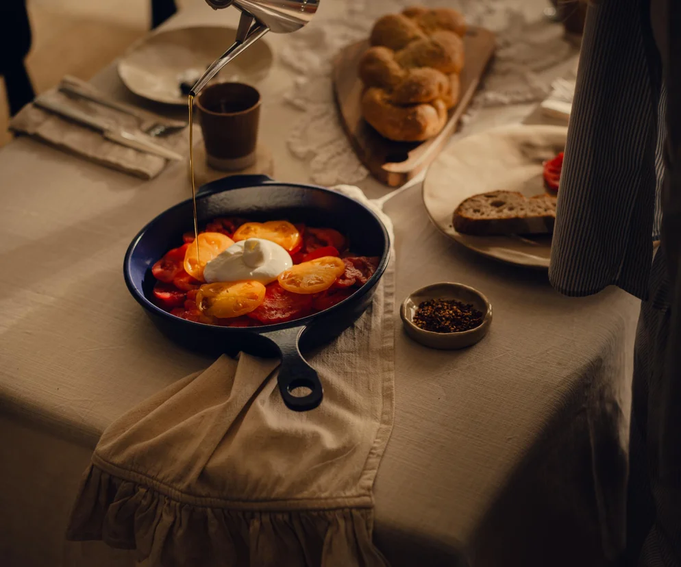 Kolor to jednak tylko jeden z elementów, które definiują ofertę marki. W centrum pozostaje materiał - żeliwo emaliowane, które łączy trwałość, funkcjonalność i niezwykłe walory użytkowe. Garnki, patelnie i płyty grillowe wyróżniają się doskonałym przewodnictwem ciepła – nagrzewają się równomiernie i długo utrzymują temperaturę, co sprawia, że potrawy serwowane bezpośrednio na stół pozostają soczyste i ciepłe jeszcze długo po zdjęciu z ognia.