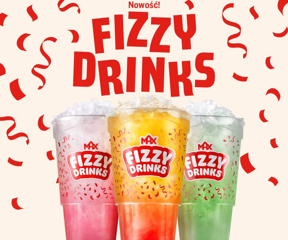 Fizzy Drinks to orzeźwiające napoje musujące stworzone z połączenia lemoniady, napoju gazowanego, dużej ilości lodu i syropu smakowego. Po udanym wiosennym debiucie w Szwecji, gdzie szybko zyskały popularność w segmencie QSR – restauracji szybkiej obsługi, od lipca na stałe zagoszczą w menu MAX również w Polsce. Na początek dostępne będą w trzech wyrazistych wariantach smakowych, w cenie 12,95 zł: