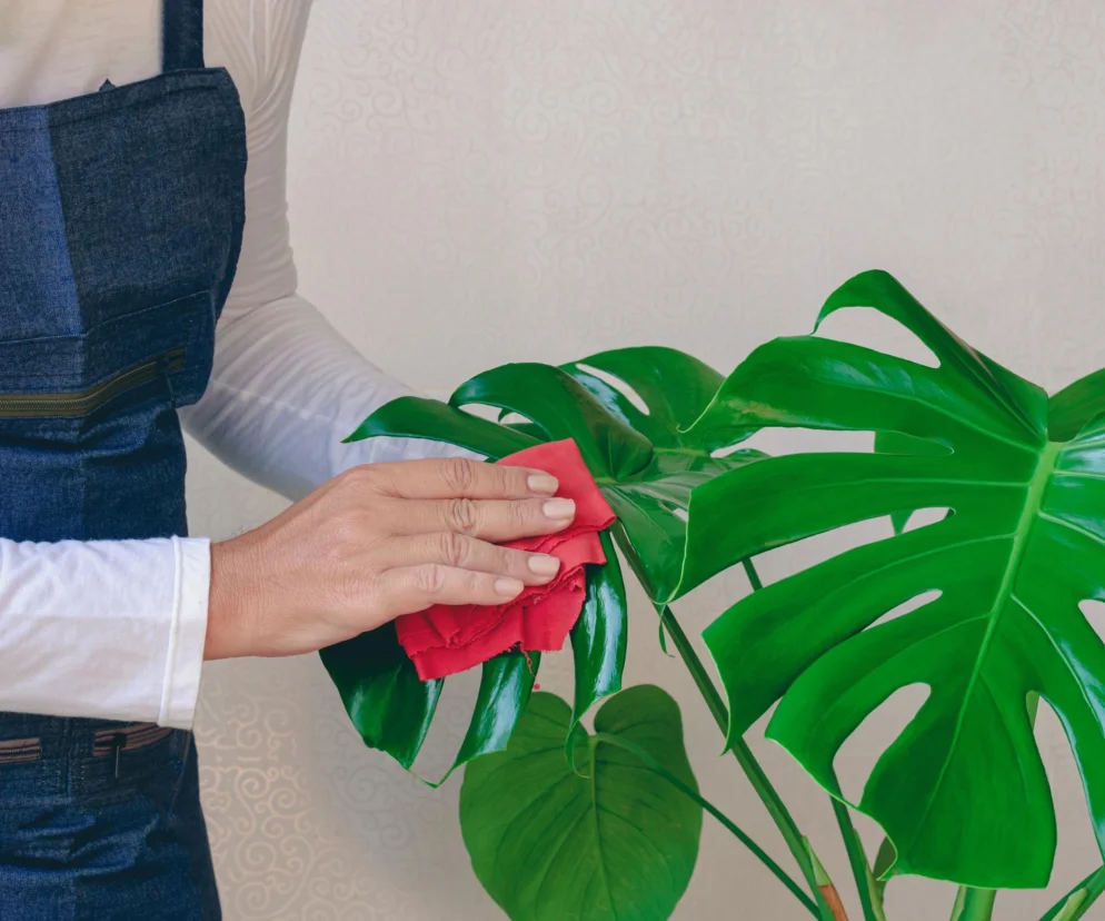 Wpuść 5 kropli do wody i przetrzyj liście monstery z kurzu. Będą lśnić