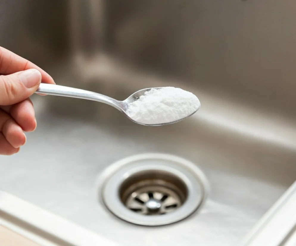 - Wsyp do odpływu około pół szklanki sody oczyszczonej.