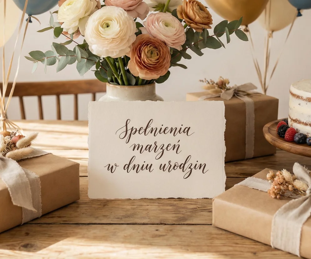 - Sto lat, Kochanie! Życzę Ci, żebyś w końcu znalazł tę słynną "instrukcję obsługi żony". Ale tak szczerze - cieszę się, że jej nie potrzebujesz, bo rozumiesz mnie bez słów.