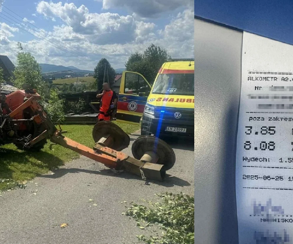 Na miejsce natychmiast wezwano służby ratunkowe. Kierujący traktorem został przetransportowany do szpitala. Jednak to, co ustalili policjanci na miejscu, wprawia w osłupienie. Pierwsze badanie na obecność alkoholu w organizmie 48-latka wykazało wynik, który jest trudny do wyobrażenia – aż 8 promili! Warto podkreślić, że dawka śmiertelna dla dorosłego człowieka to zazwyczaj od 4 do 5 promili.