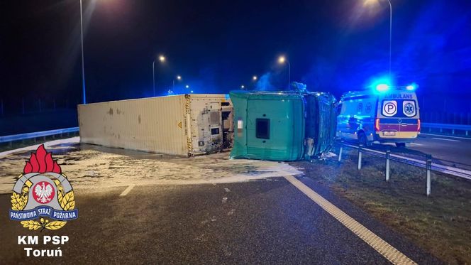 Ciężarówka przewrócił się na A1 w Nowym Dworze. Kierowca ranny, droga zablokowana!