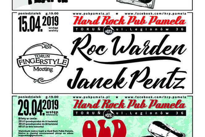 Kolejny poniedziałek (15.04.2019) to Dzień Gitary w Hard Rock Pubie Pamela. Tym razem zorganizowany w formule Fingerstyle Meeting. Wystąpi dwóch wirtuozów gitary: Roc Warden (USA) oraz Janek Pentz (PL). Wstęp jest wolny. Start godzina 19.