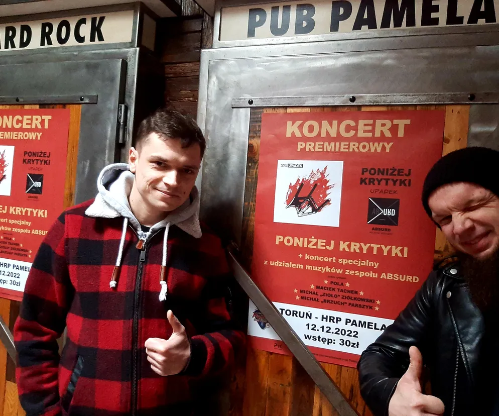 W poniedziałek (10 grudnia) warto być w toruńskim Hard Rock Pubie Pamela. Występ ekipy Poniżej Krytyki to nie wszystko. Gościnnie z zespołem wystąpią: Pola (Tortilla) oraz Maciek Tacher. (ex. Manchester). W drugim secie koncertu, lider Poniżej Krytyki - Mateusz Czyżniewski, zaprosił do współpracy byłych muzyków grupy Absurd. Razem wykonają kilka autorskich utworów Mateusza z repertuaru tego kultowego zespołu.