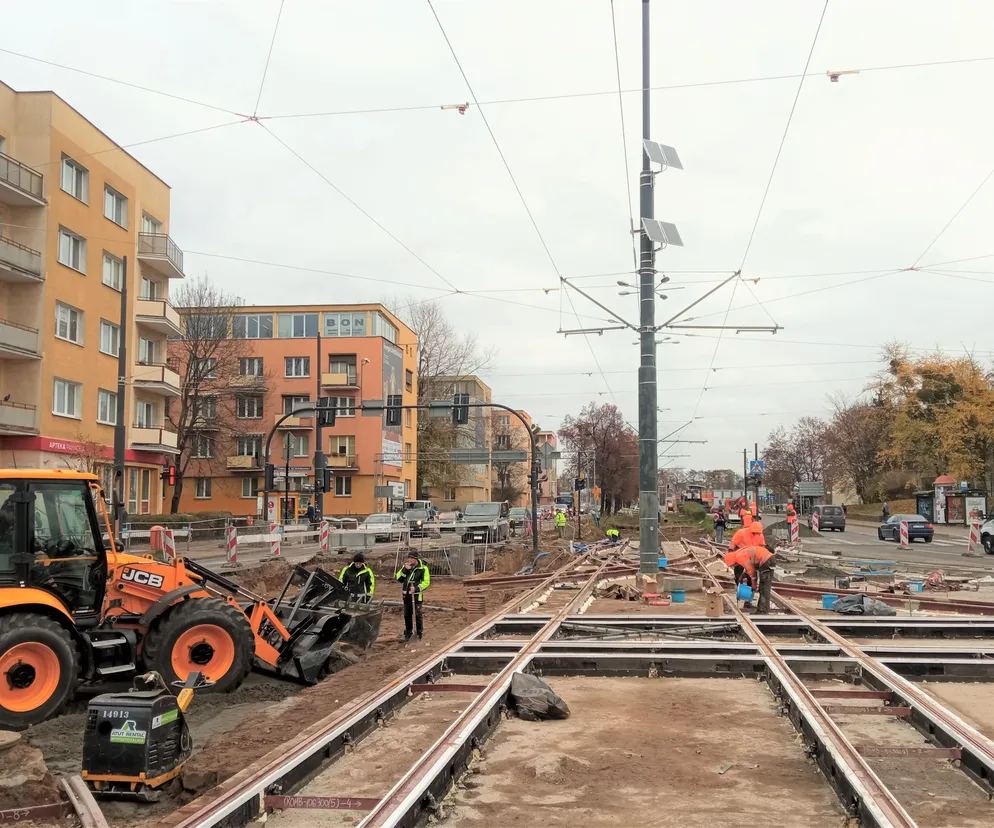 Na odcinku od ul. Żwirki i Wigury do Długiej powstaje podbudowa pod nowe torowisko, a na samej Długiej zakończono układanie warstw bitumicznych i trwają prace wykończeniowe oraz porządkowe. Dalej powstaje zachodnia część ronda Czadcy i ul. Legionów w stronę ul. Kaliskiego.