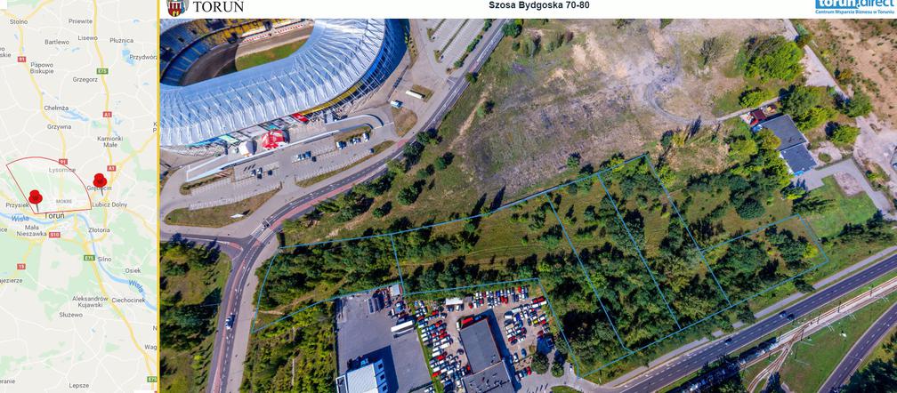 5 działek wyceniono łącznie na blisko 7 milionów złotych. Mają powierzchnie od 21 do 63 arów. Są to tereny, uzbrojone w podstawowe sieci i urządzenia infrastruktury technicznej. Rury z gazem, wodą i kable energetyczne znajdują się w drogach publicznych przylegających do nieruchomości. Można tam budować obiekty usługowo-produkcyjne i składy magazynowe. Dojazd do działek planowany jest drogą wewnętrzną od strony drogi krajowej nr 80, czyli Szosy Bydgoskiej.