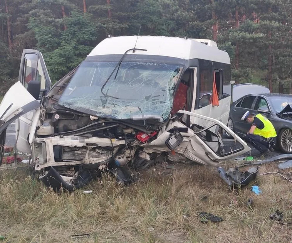 - Jak wstępnie ustalili policjanci, 62-letni kierujący osobowym mercedesem z nieznanych dotąd przyczyn zjechał na przeciwległy pas i zderzył się czołowo z pojazdem volkswagen w typie małego autobusu, którym kierował 52-letni mężczyzna. W wyniku odniesionych obrażeń kierowca mercedesa zmarł krótko po przewiezieniu do szpitala. Dziewięciu kolejnym osobom, w tym kierowcy autobusu i wszystkim jego pasażerom udzielono pomocy medycznej - wyjaśnia asp. Dominika Bocian, oficer prasowa KMP w Toruniu.