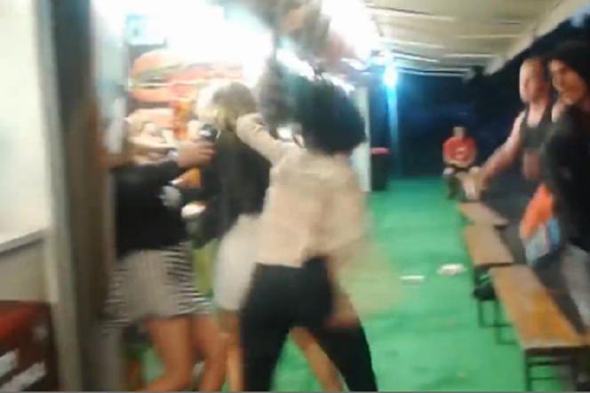 Widać na nim, jak nietrzeźwe dziewczyny okładają się pięściami, szarpią się za włosy i rzucają w swoja stronę niewybredne komentarze. Wszystkiemu przygląda się grupa mężczyzn, która postanawia rozdzielić napastniczki dopiero w momencie, kiedy konflikt przybiera jeszcze bardziej na sile.