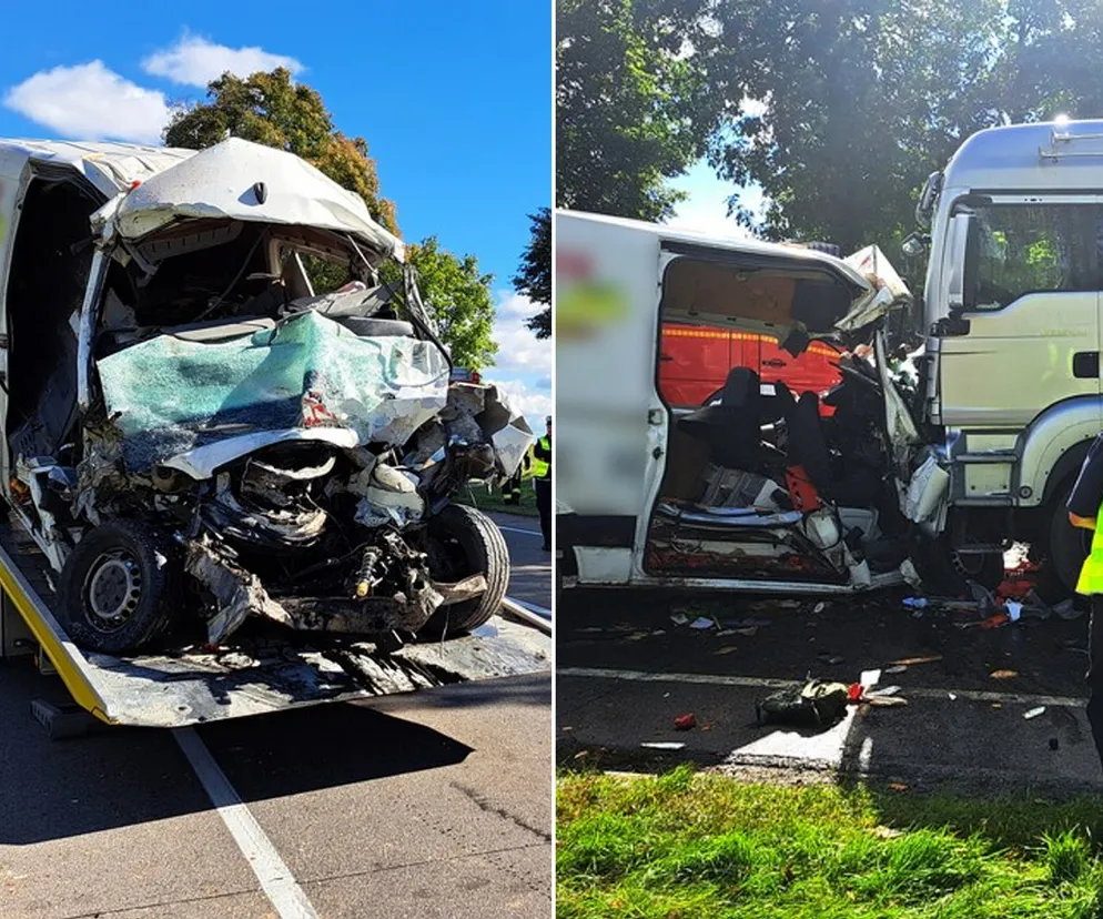 Dwóch 30-latków zginęło pod Starogardem Gdańskim. Tir zmiażdżył dostawczego mercedesa
