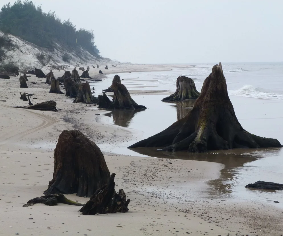 Las sprzed tysięcy lat został dawno temu zasypany przez piaski. Teraz, pod naporem siły morskich fal oczom badaczy ze Słowińskiego Parku Narodowego ukazały się pozostałości wiekowego drzewostanu. Dzięki działaniu słonej wody, resztki puszczy zdołały przetrwać do dzisiaj. Zobaczcie naszą galerię i niezwykłe nagranie dawnego lasu!