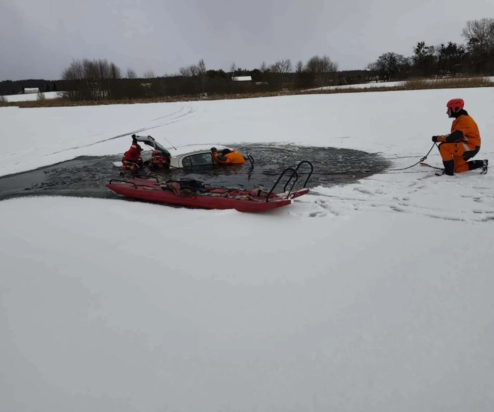 Pomorskie: Wjechali autem na zamarznięte jezioro. Lód się załamał