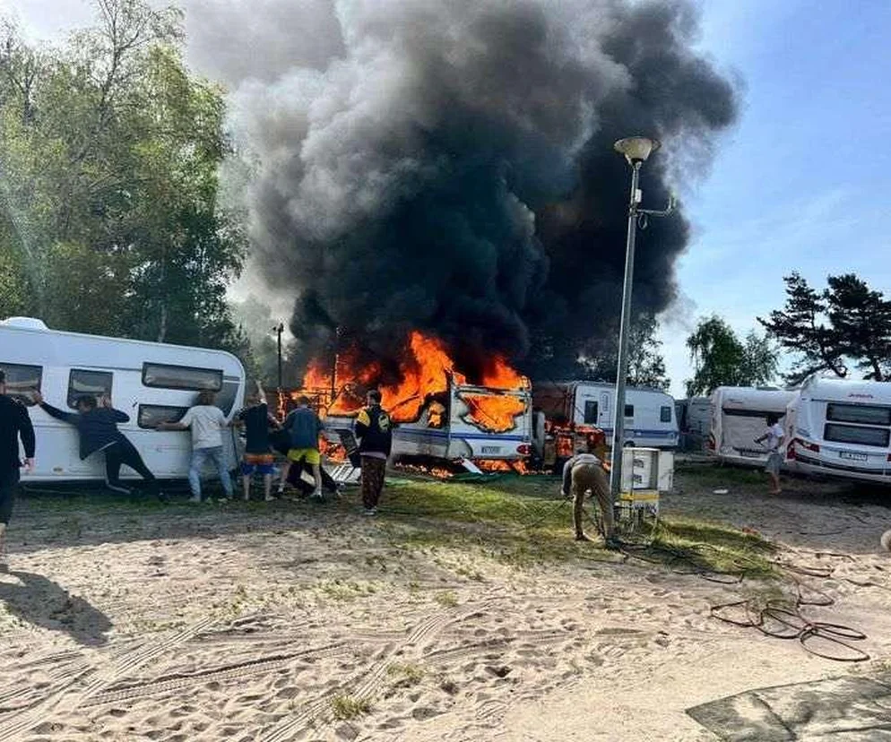Pożar na kempingu w Jastarni! Spłonęły dwie przyczepy