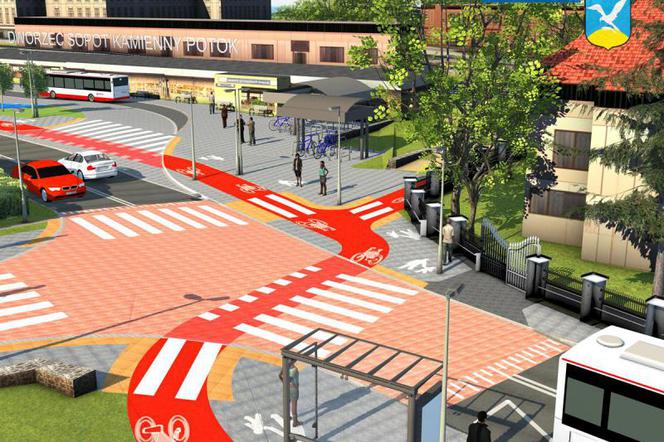 - przebudowę pętli autobusowej przy przystanku SKM Sopot Kamienny Potok, budowę postoju taxi i 2 miejsc kiss&ride,
