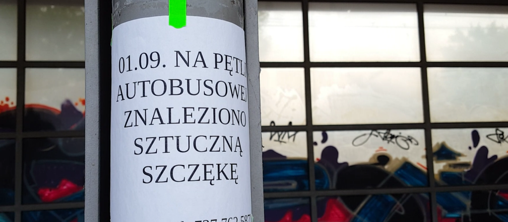 - Zauważyłem po prostu coś niecodziennego na ławce. Proteza, sztuczna szczęka. Od razu przypomniałem sobie losy starszych osób z mojej rodziny, które właśnie takiej sztucznej szczęki nie mogły znaleźć. Potraktowałem to więc ze świadomością, jaki to jest wielki kłopot dla danej osoby, jaki koszt. Zawinąłem więc protezę w chusteczkę, zawiozłem do domu, a następnego dnia rozwiesiłem na przystanku ogłoszenia. Mam nadzieję, że ktoś wróci na pętlę i rozpozna temat - mówi znalazca. Posłuchaj: